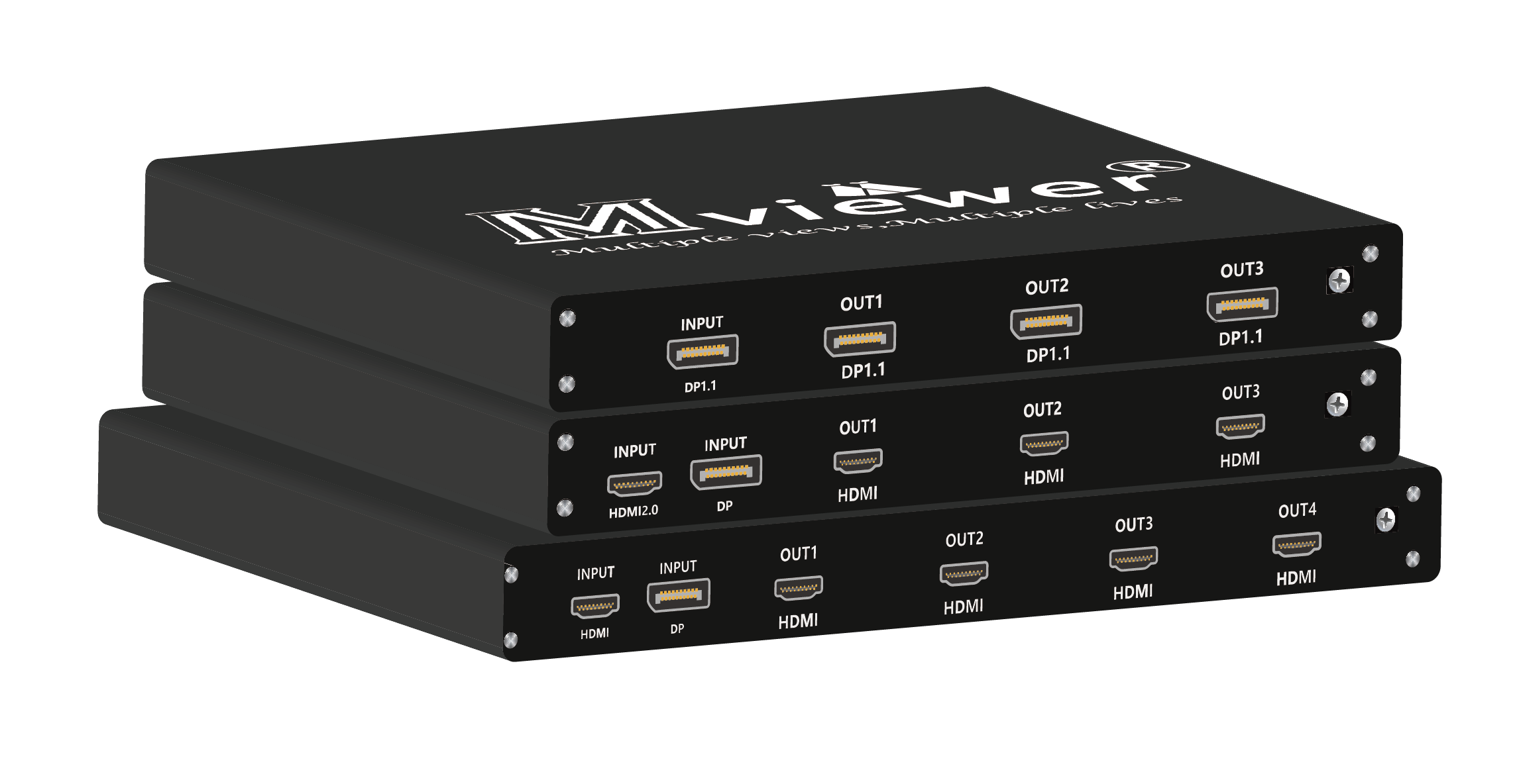 MV30X系列多屏宝是针对笔记本电脑和台式机的一种外部多显示器升级工具。单机可将一路DP/HDMI信号输出至四台显示端,水平输入可以支持7680X1200@60Hz;同时,单机支持信号水平、垂直或MXN输出,实现多种灵活的画面显示。通过多个设备并联,还能扩展至更大显示规模,可广泛是应用于多通道投影系统。